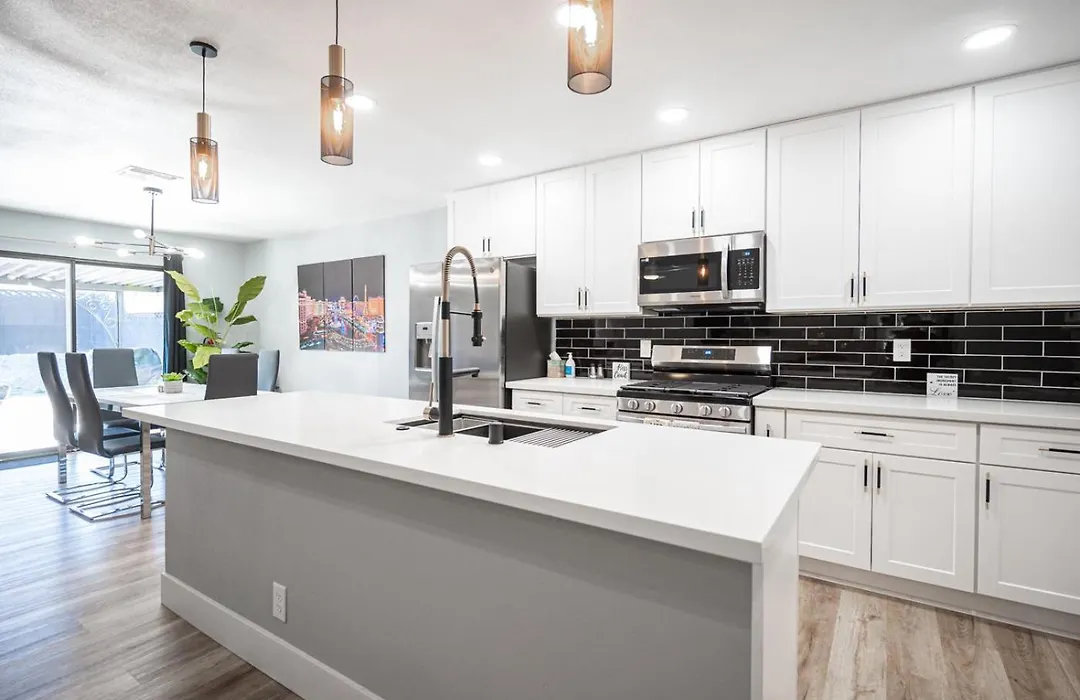 La villa Luxury Retreat The Vegas Edition est équipée d'une cafétière/théière électrique, d'un réfrigérateur et de la vaisselle pour préparer vos repas dans un coin repas. Vous pourrez dîner dans The Real Crepe, non loin de cette propriété de Las Vegas.
